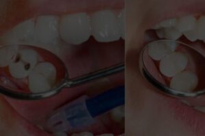 - Trocknen Sie vorsichtig das Provisorium/Krone/Brücke sowie, wenn möglich, Ihren Zahn mit einem Papiertaschentuch ab. Danach geben Sie etwas Zahnpasta in das Provisorium/Krone/Brücke hinein und setzen es auf den Zahn. Halten Sie anschließend ca. 2 Minuten zugebissen.